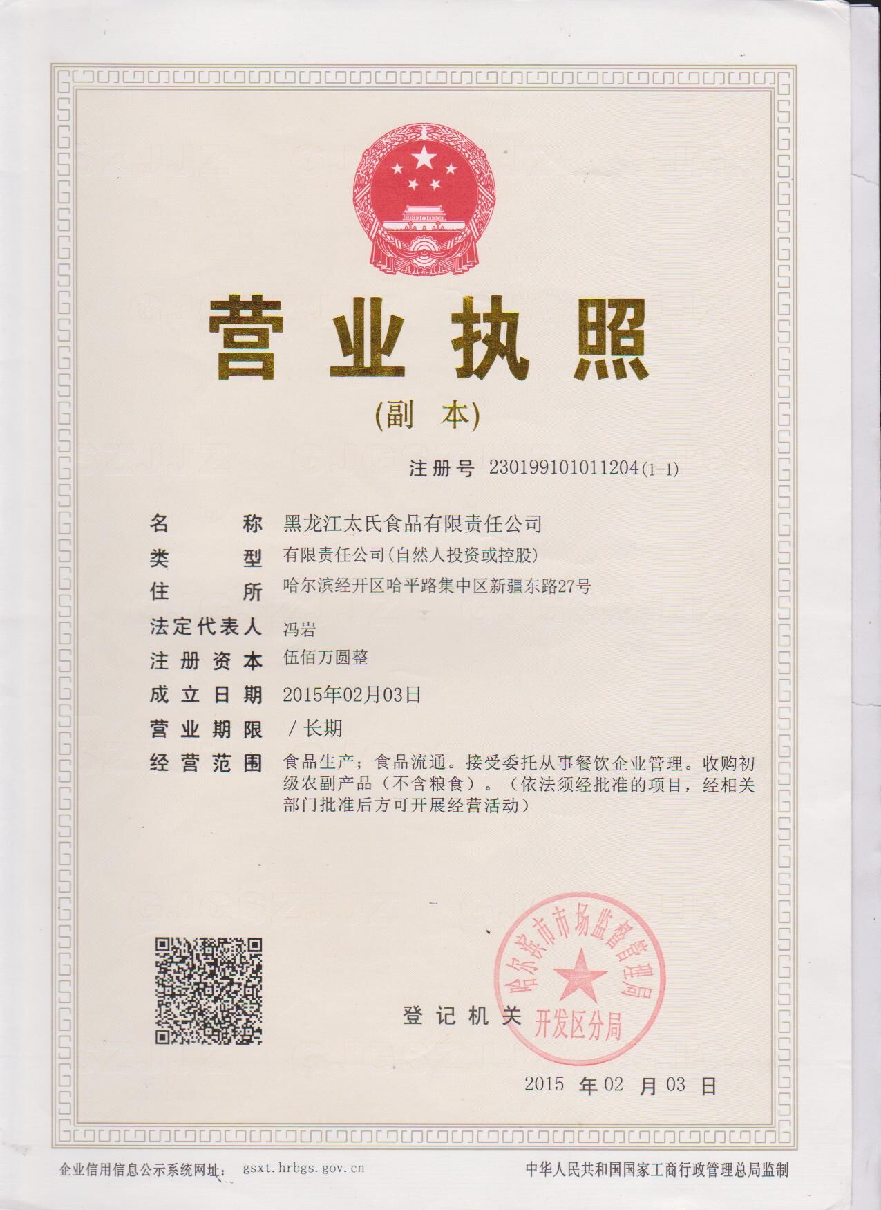 黑龍江太氏食品有限責(zé)任公司成立于2015年,是由米旗集團(tuán)控股的食品公司,總部位于哈爾濱市經(jīng)開區(qū)哈平路集中區(qū),經(jīng)營范圍已涉及后勤社會化保障、團(tuán)餐、學(xué)生營養(yǎng)餐、高鐵餐、元山師傅專門店、活動供餐等多個領(lǐng)域。